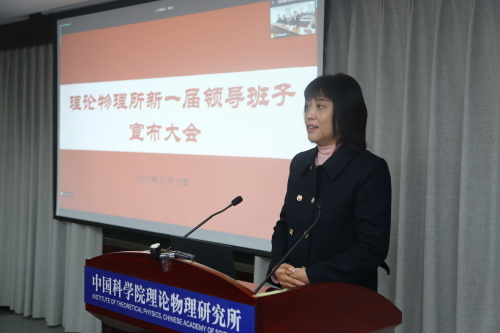 1115日上午,理论物理所召开新一届领导班子宣布会议。中科院人事局副局长蔡宏志同志、领导干部二处处长宋琦同志、研究所新老领导班子成员、全体在职职工参加了会议。会议采用线上线下相结合的方式进行,由蔡宏志同志主持。